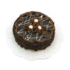 Fire honningbiskvittlag med pisket krem og rømme, overtrukket med sjokoladekrem.