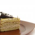Lys biskvittkake med fløtekrem med en behagelig cappuccinosmak og sjokoladeflak.