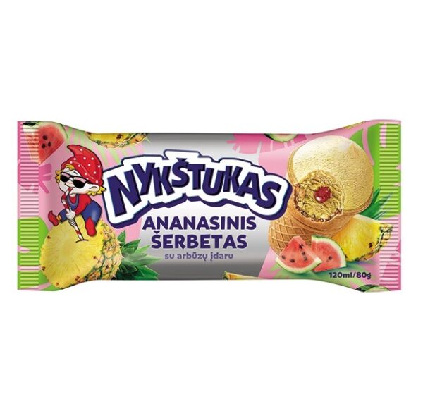 Sorbet med ananas og wannmelon fylling i vaffelkopp “NYKŠTUKAS” 120ml(983)
